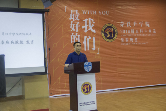 2012级“最奇葩”“最牛”“最爱自拍”同学的照片逐一出现,台下顿时热热闹闹地,满是欢声笑语,当各班的集体照缓缓闪过,典礼现场倏地安静了下来,同学们或沉思,或微笑,都回忆着过往的种种。随后,2015唐立新优秀教师奖获得者——秦应兵老师应邀发言,赢得掌声连连。毕业生代表,来自2012级茅信的时任学生会主席——王萌抒发了他的交大情怀,满含深情地讲述了从进入在线赌场